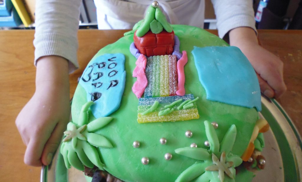 De kinderen oefenen het opspuiten van een cakeje, werken met fondant en maken de mooiste figuren met allerlei uitstekers.